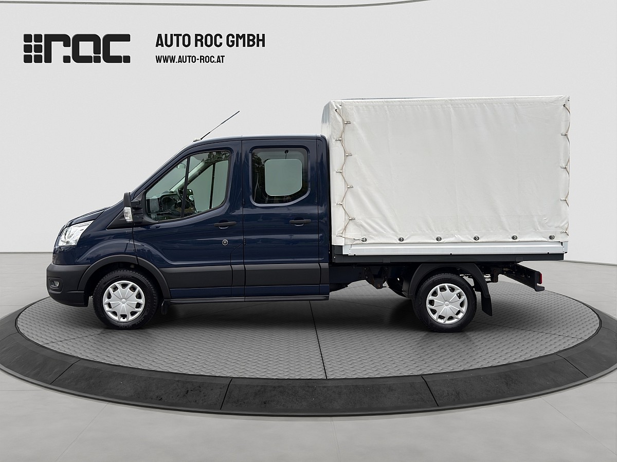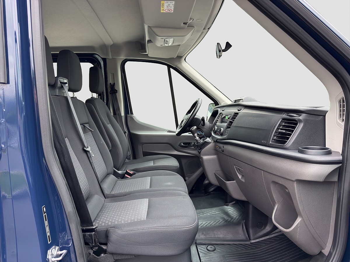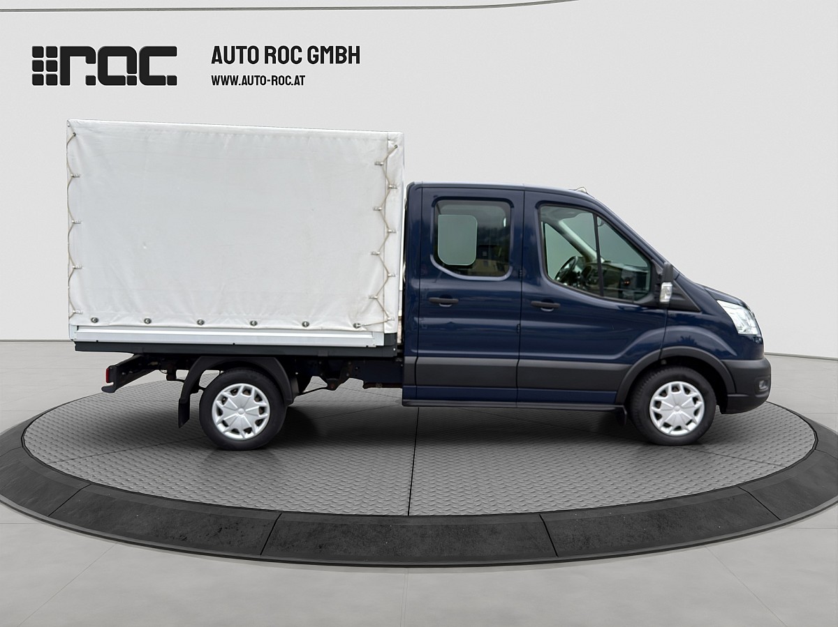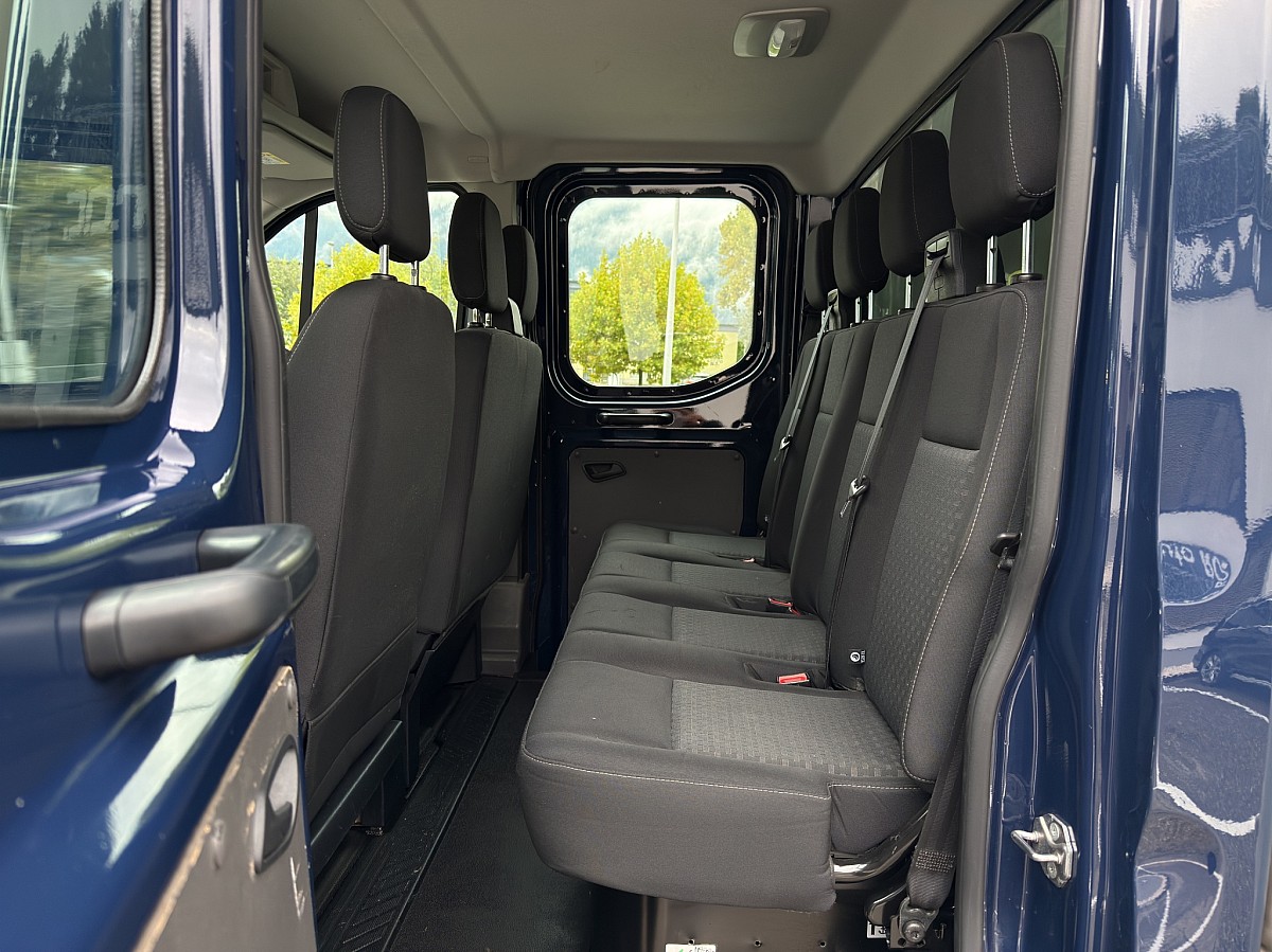 Zum Verkauf angeboten wird ein Ford Transit Pritsche Diesel Front DoKa 2,0 EcoBlue L2H1 310 Trend, in der Farbe Blazer Blau, Interieur in Sitzanlage System-Stoff in Schwarz mit 51.600 KM Laufleistung.